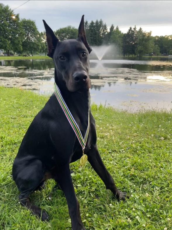 She has a wonderful disposition and is a true definition of a Doberman Pinscher!!